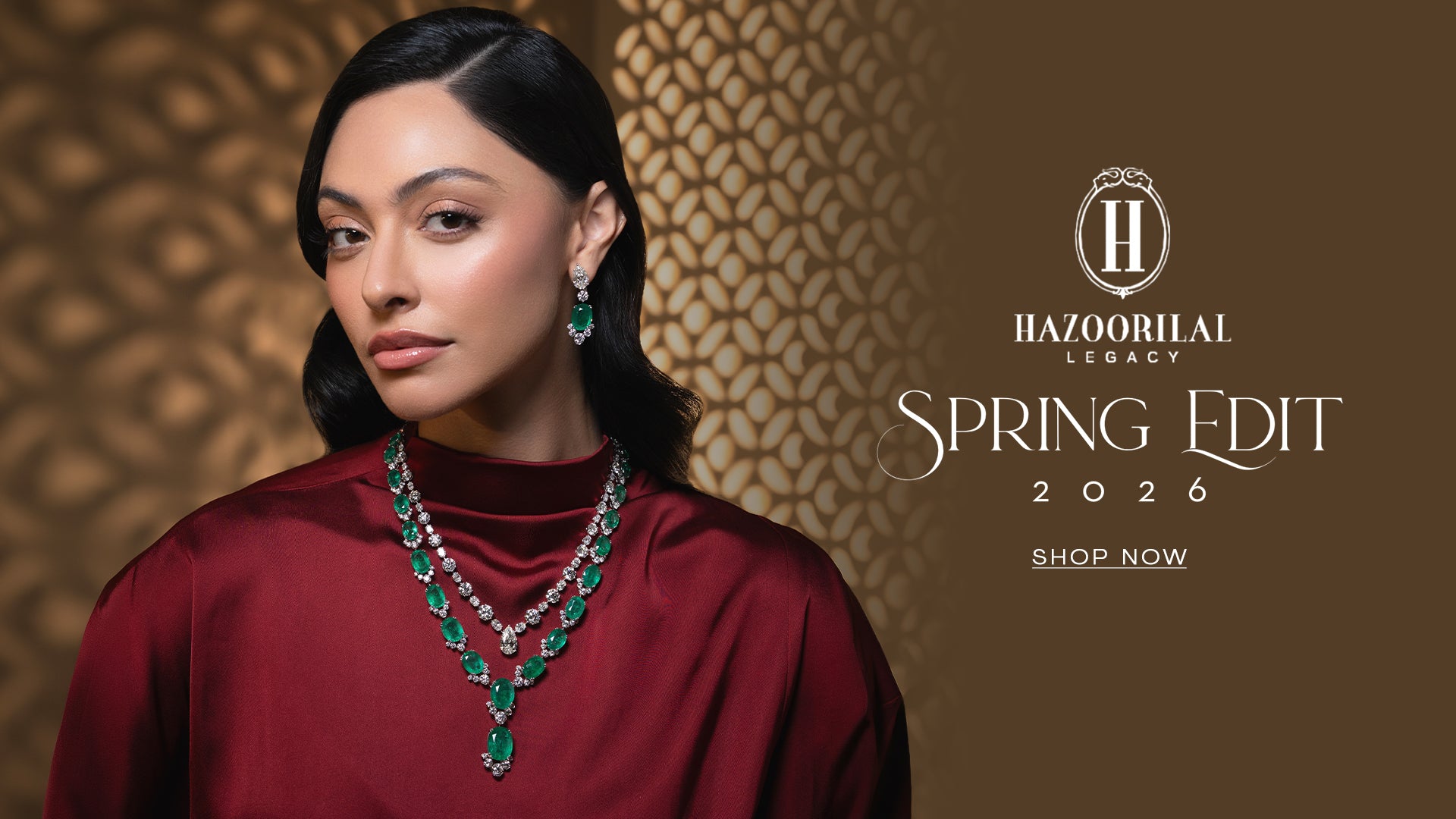 An elegant timeless portrait, rich in detail and grandeur, the Hazoorilal Legacy bride wearing jewellery