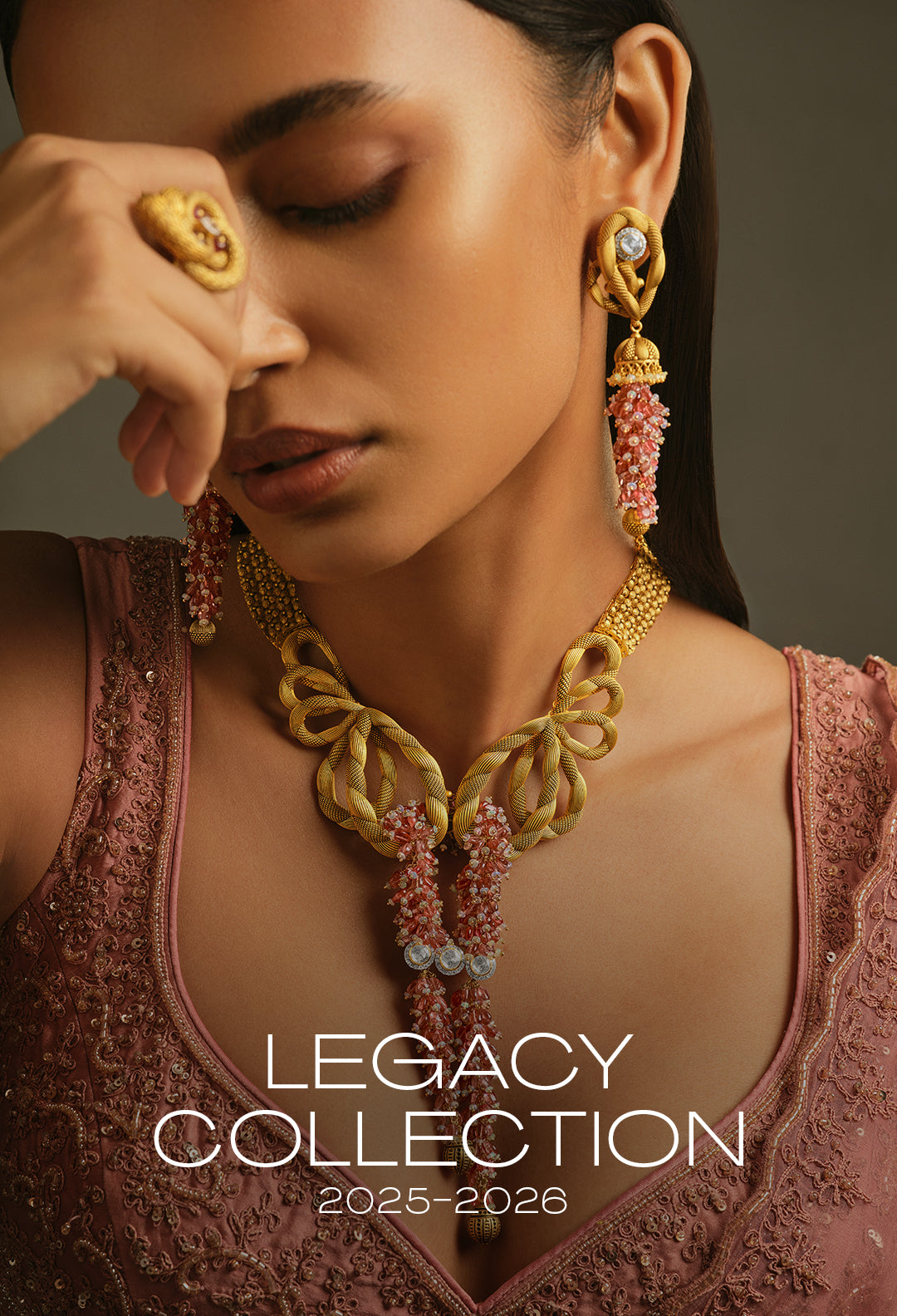 An elegant timeless portrait, rich in detail and grandeur, the Hazoorilal Legacy bride wearing jewellery