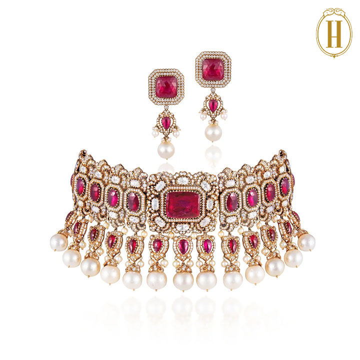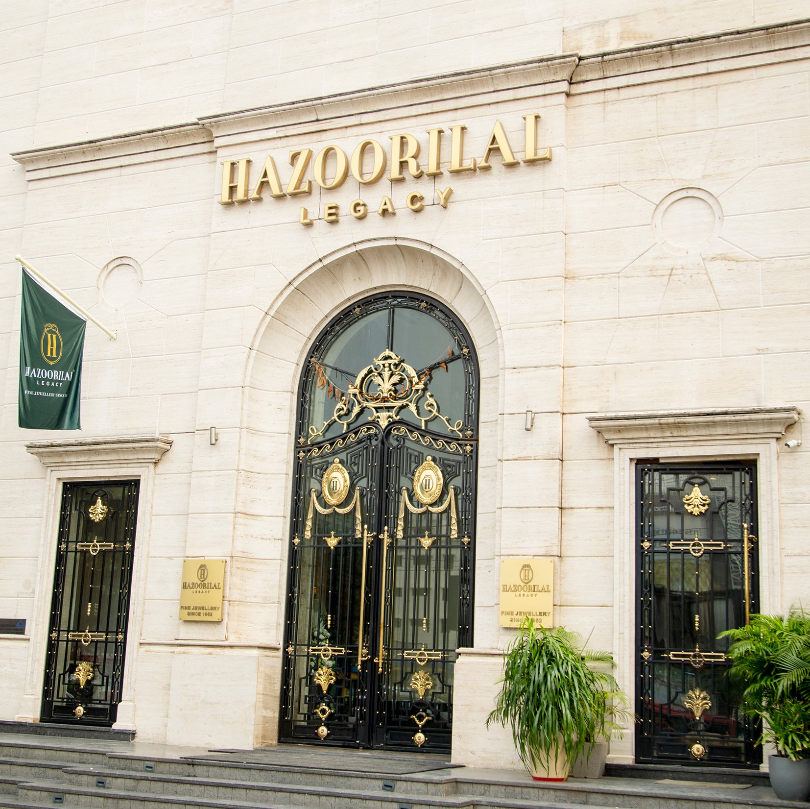An elegant timeless portrait, rich in detail and grandeur, the Hazoorilal Legacy bride wearing jewellery