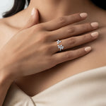 18 kt white gold ring featuring a unique array of fancy-shaped diamonds