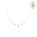 18 Kt yellow gold necklace with pear and round shaped drops, showcasing round brilliant-cut diamonds