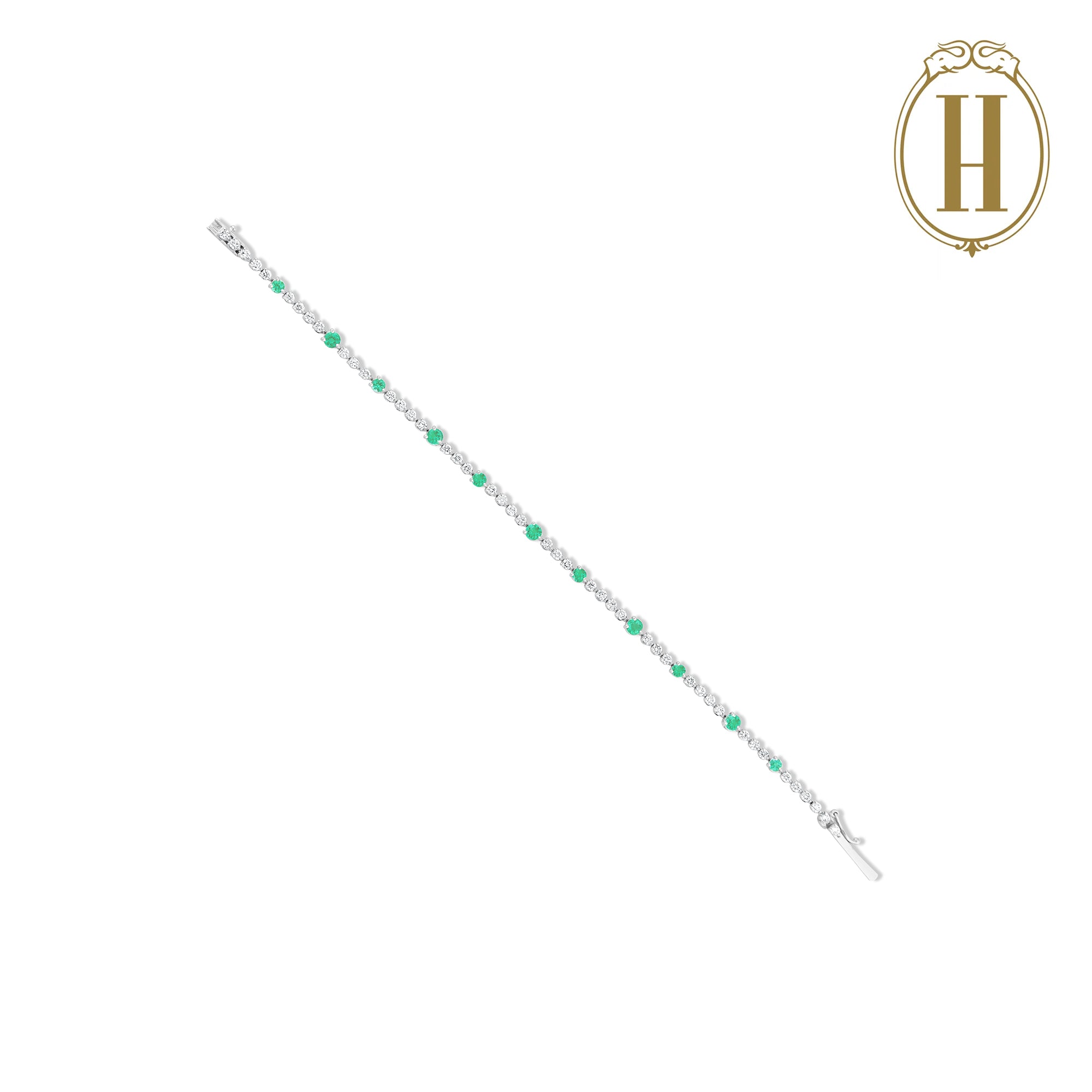 White gold bracelet with round brilliant cut diamonds and Emeralds