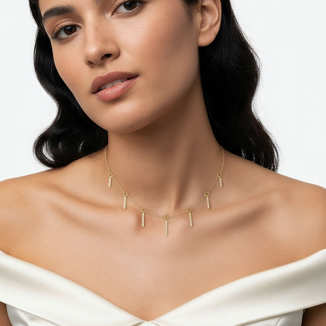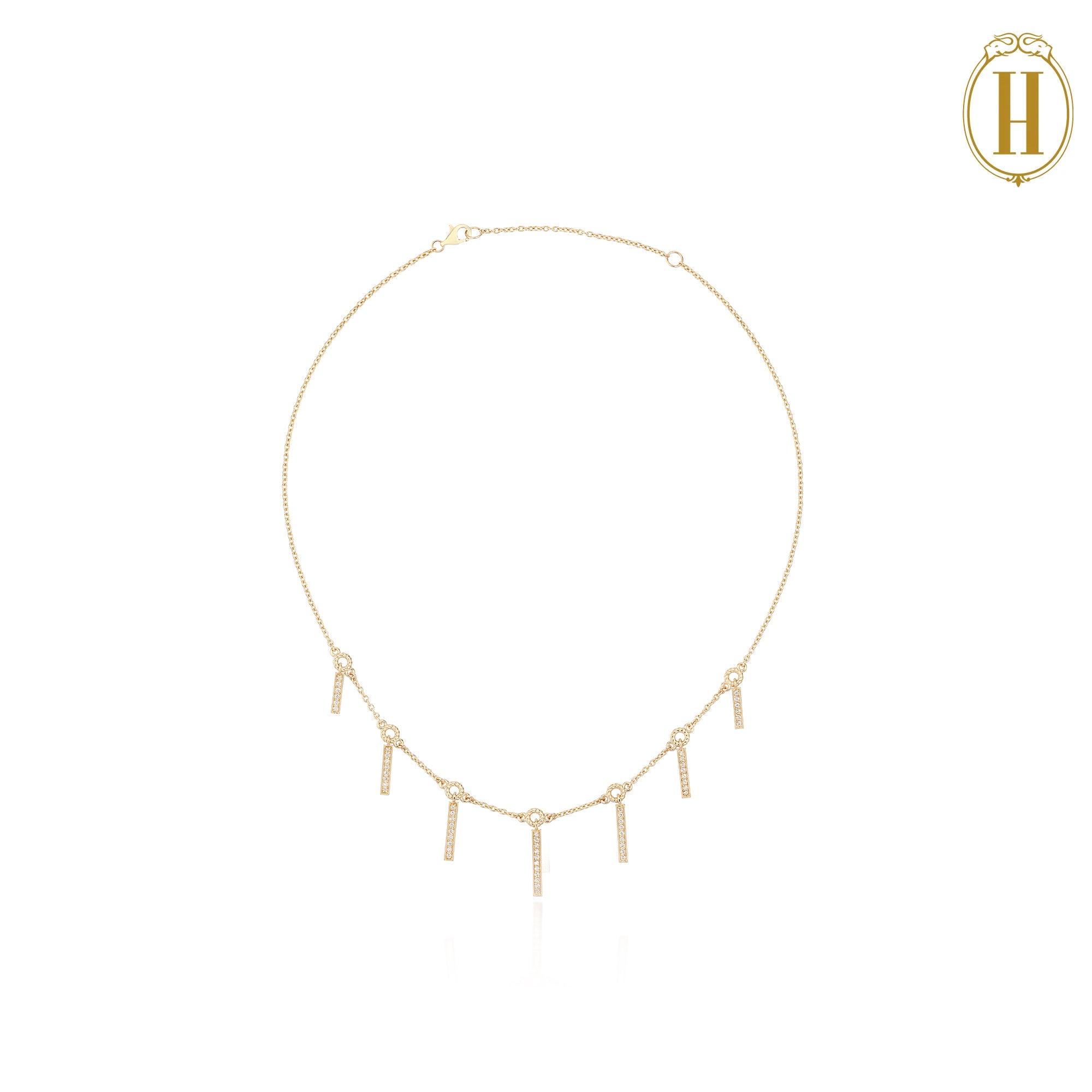 14 KT yellow gold necklace with round brilliant-cut diamonds