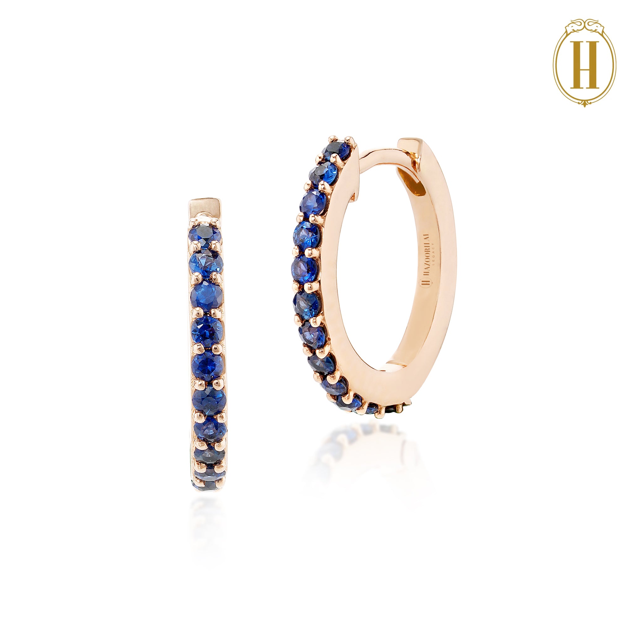 18KT gold hoop earrings with Blue Sapphires