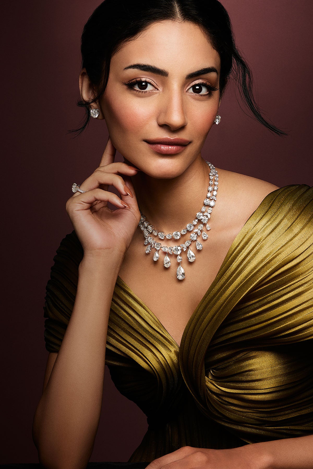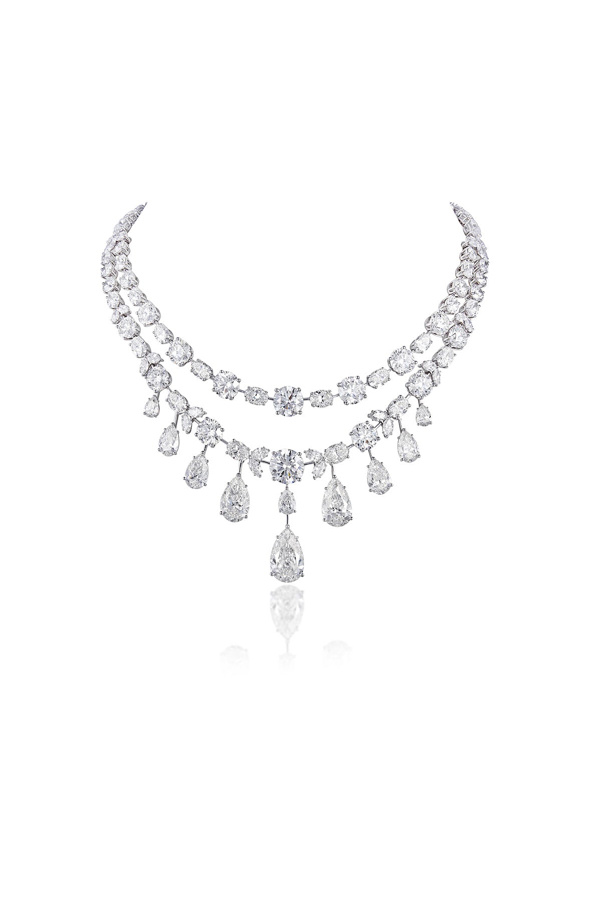 This iconic necklace features an array of ascending pear-shaped and round brilliant cut natural diamonds, highlighted by a grand center solitaire. The Legacy Collection 24-25 is a tribute to the timeless appeal of natural diamonds and the art of fine jewellery.
