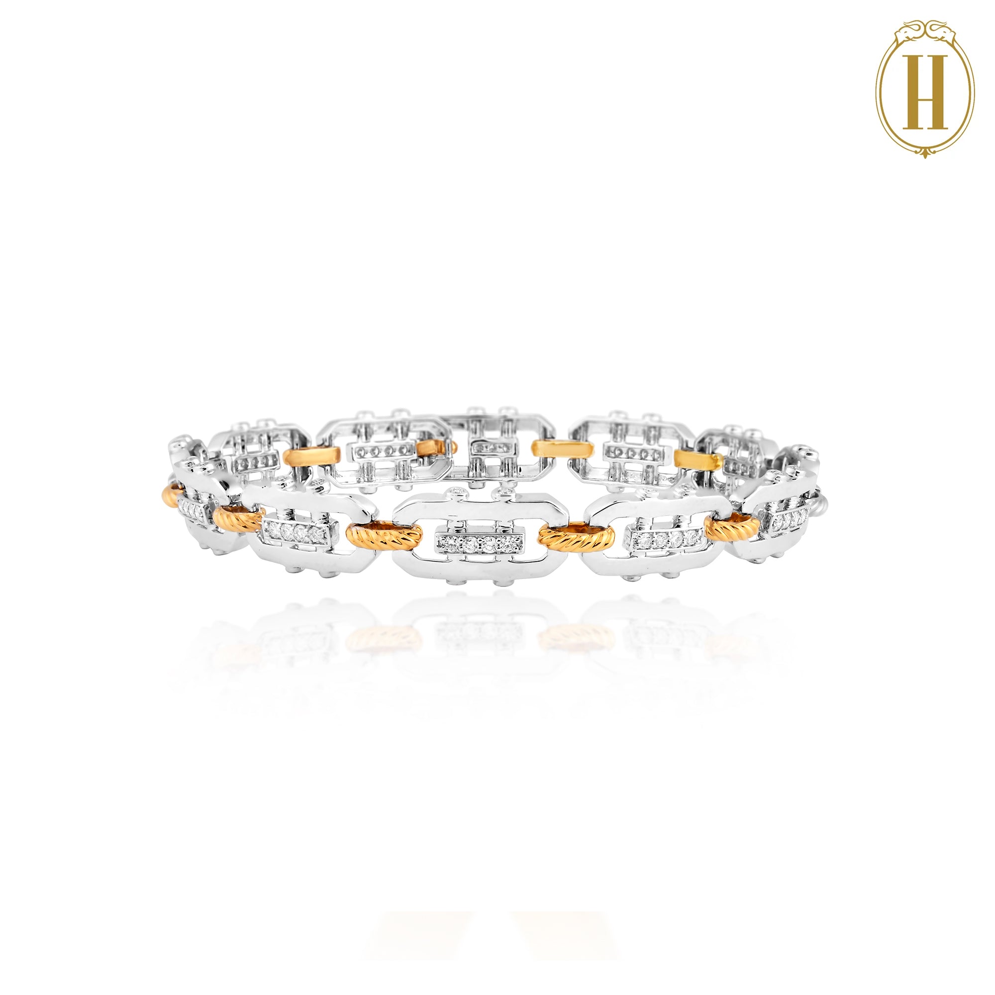 A Striking 18 Kt Gold Bracelet Of Interlinked Diamonds And Mixed Gold Accents.