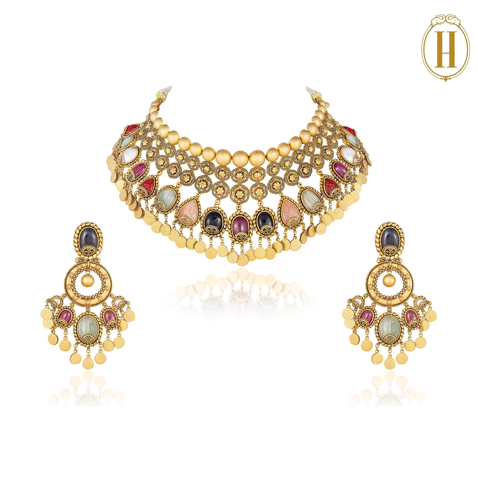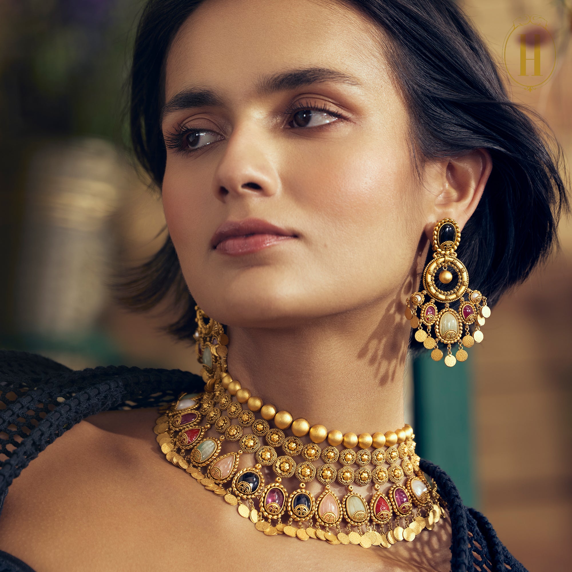 A legacy of heritage and craftsmanship, brought to life in a cascade of gold and traditional Navratnas.