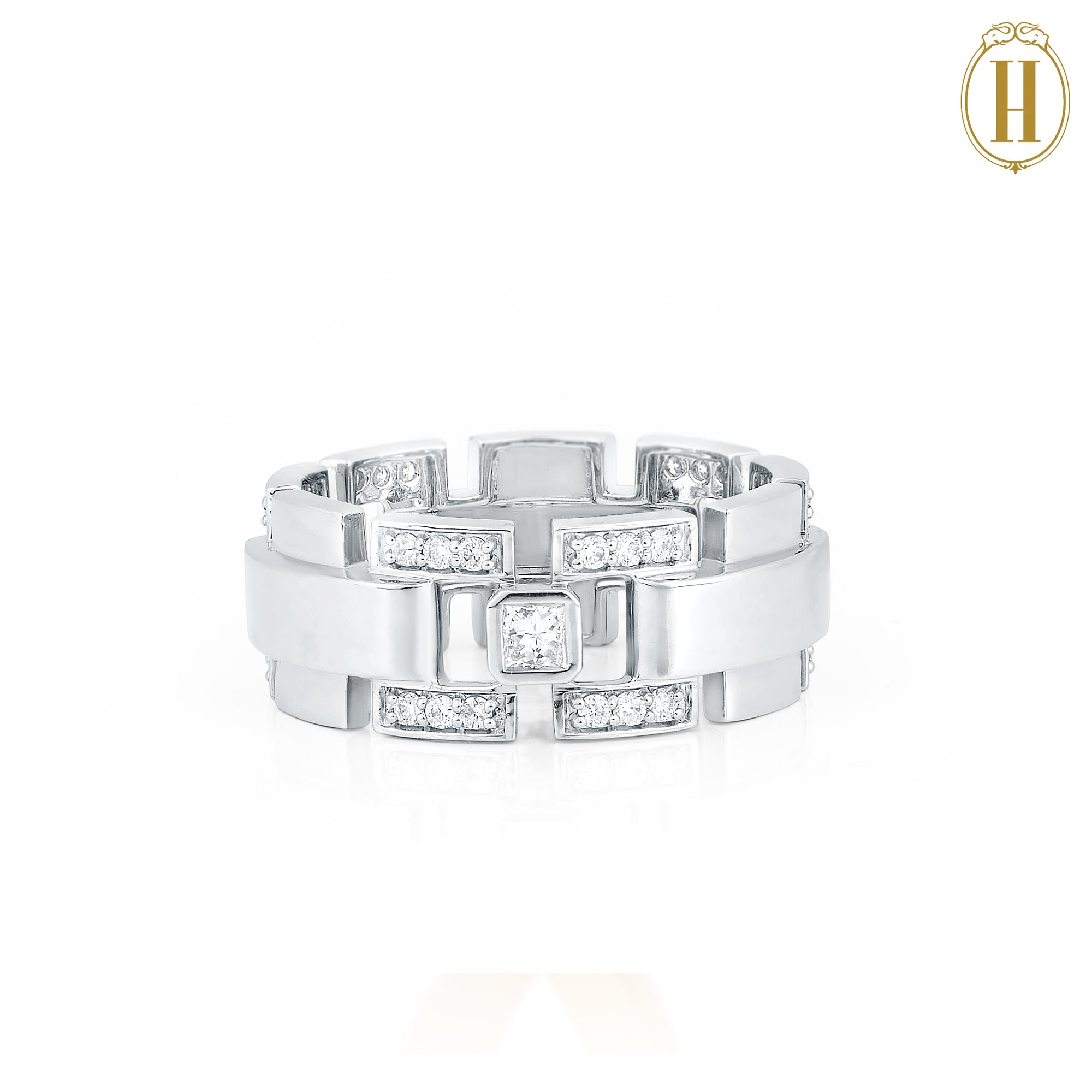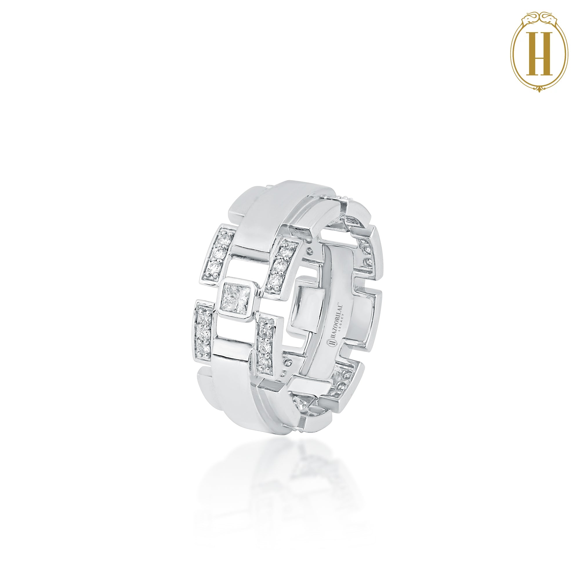 18 Kt White Gold Ring Adorned With Fancy-Shaped Diamonds, Crafted In A Bold Cuban Link Style