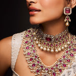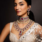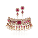 Legacy Bridal Ruby Polki Choker Set with Pearl Drops