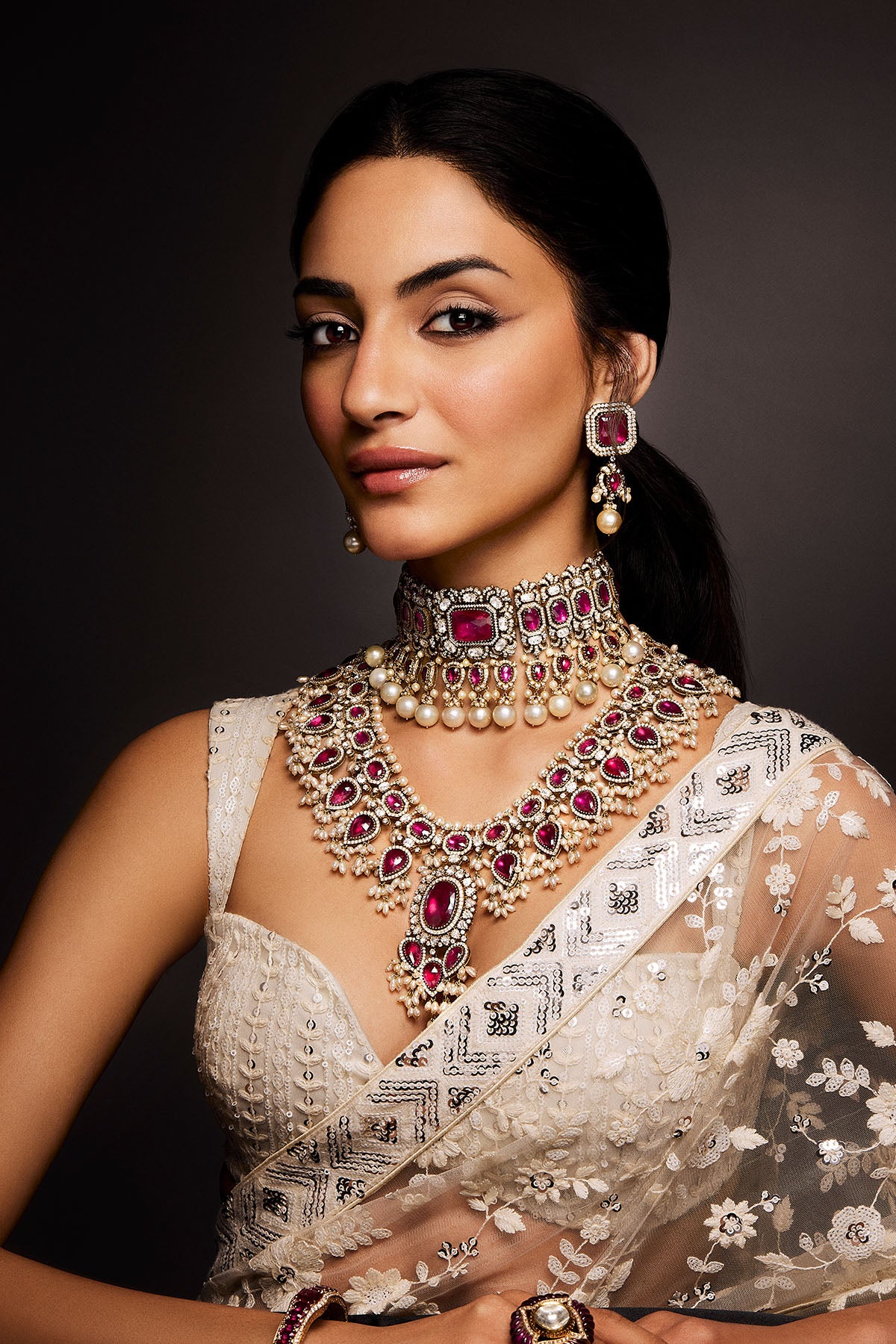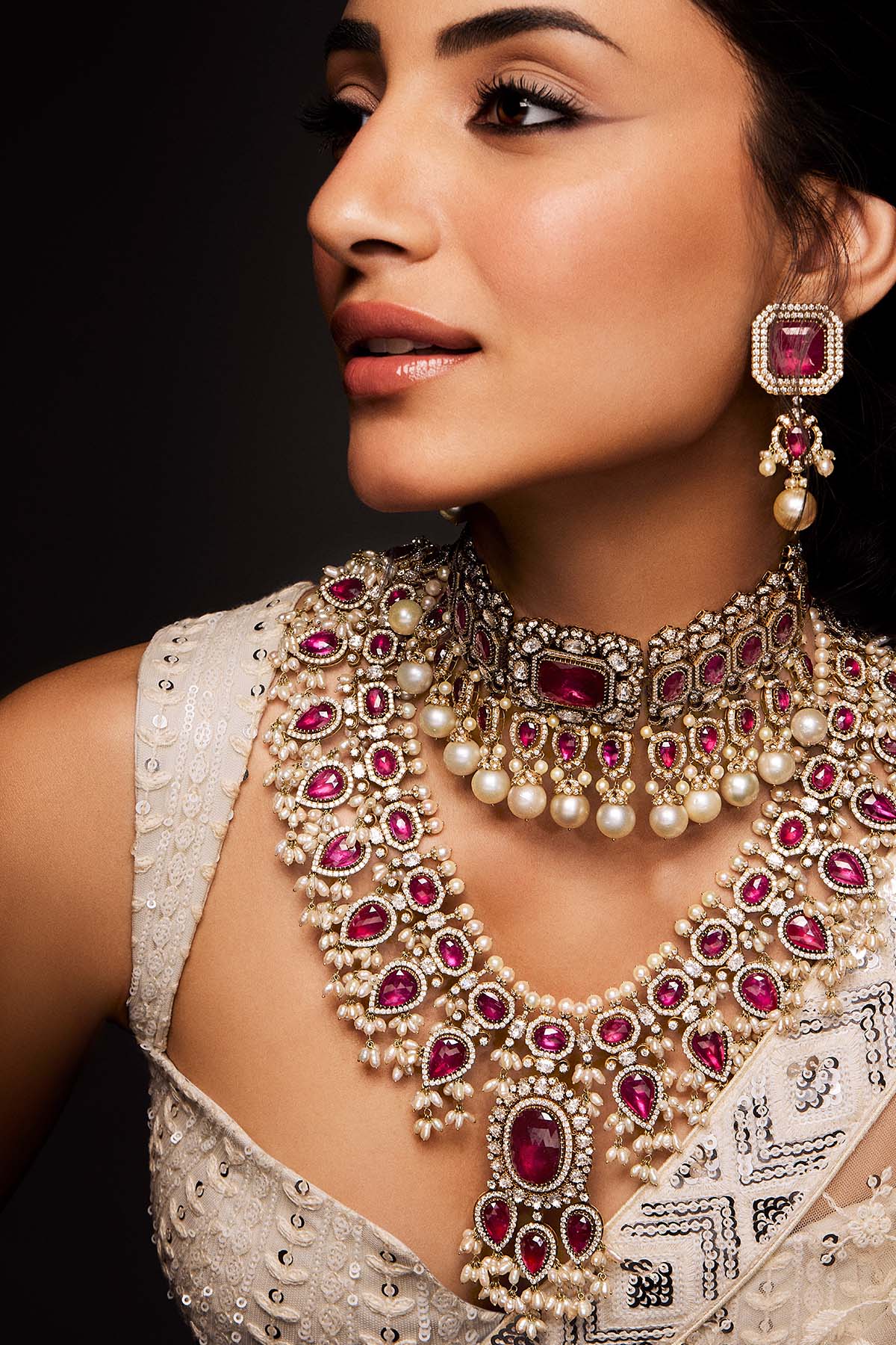 This exquisite Ruby Bridal Choker set embodies elegance and romance, featuring a stunning cascade of vibrant Rubies paired with delicate pearls and natural diamonds. This year’s Legacy Collection celebrates the artistry of fine jewellery and the spirit of festive celebration.