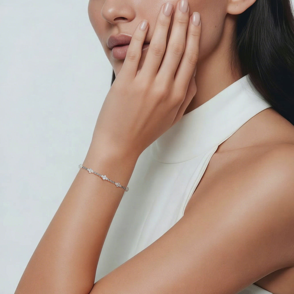An 18 KT white gold bracelet designed with round brilliant-cut diamonds.