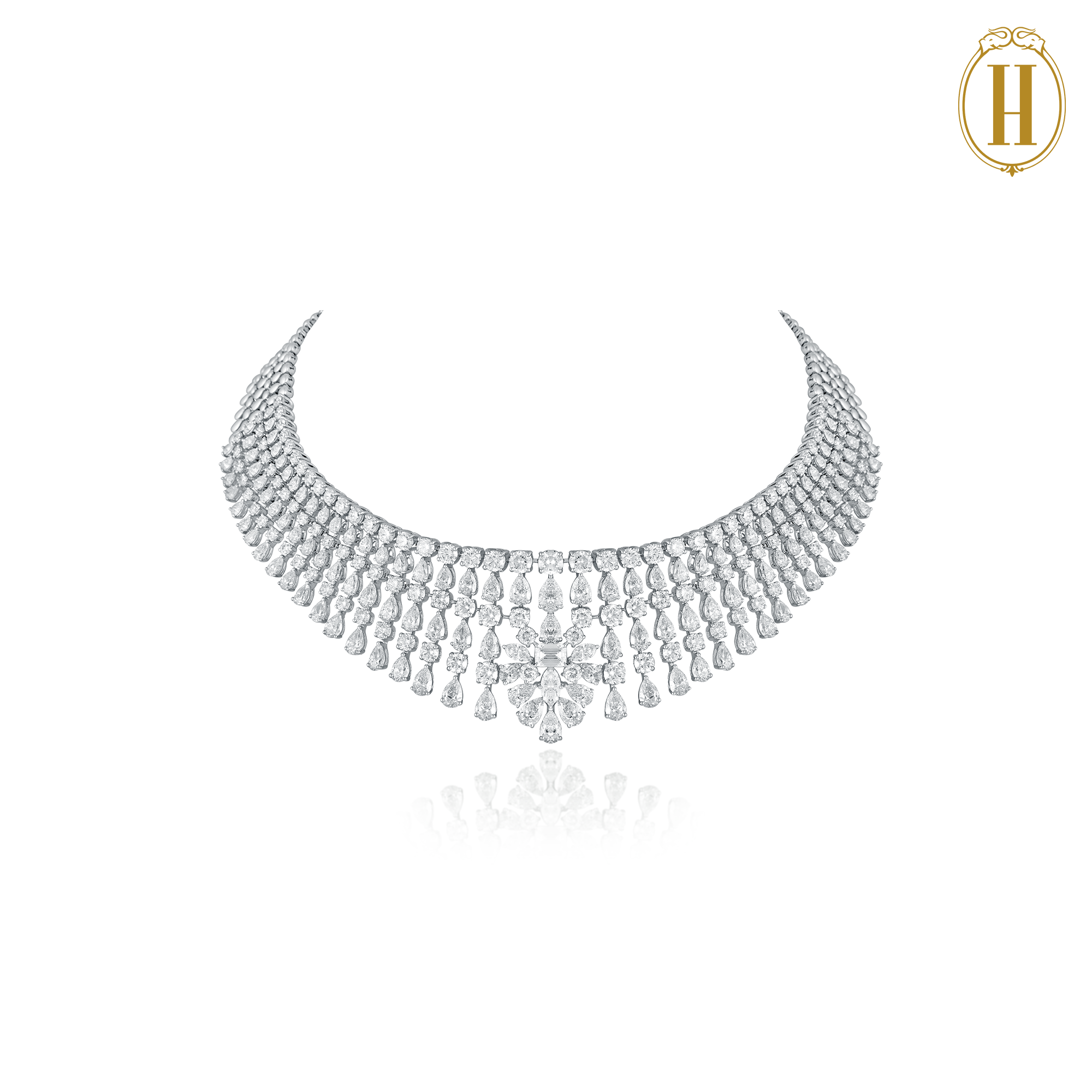 An elegant choker necklace, studded with an assortment of scintillating brilliant-cut diamonds.